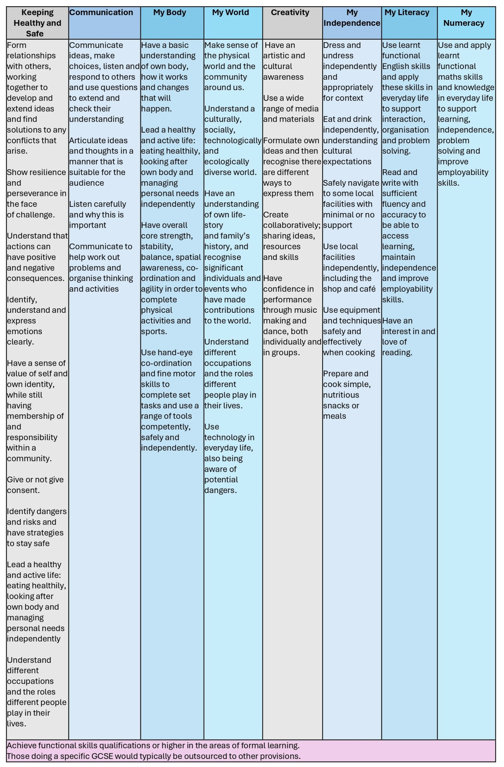 Impact: Pupils following the pre-formal pathway will know how to: Impact: Pupils following the informal pathway will know how to:Impact: Pupils following the semi-formal pathway will know how to: